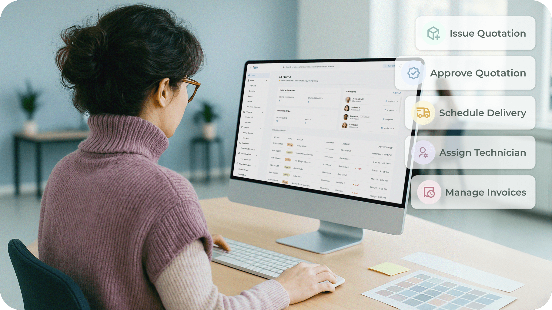 Toppal, a B2B furniture materials supplier, faced growing inefficiencies as teams relied on fragmented tools and manual coordination. Misaligned responsibilities between showroom and back office staff were slowing operations and affecting service quality.